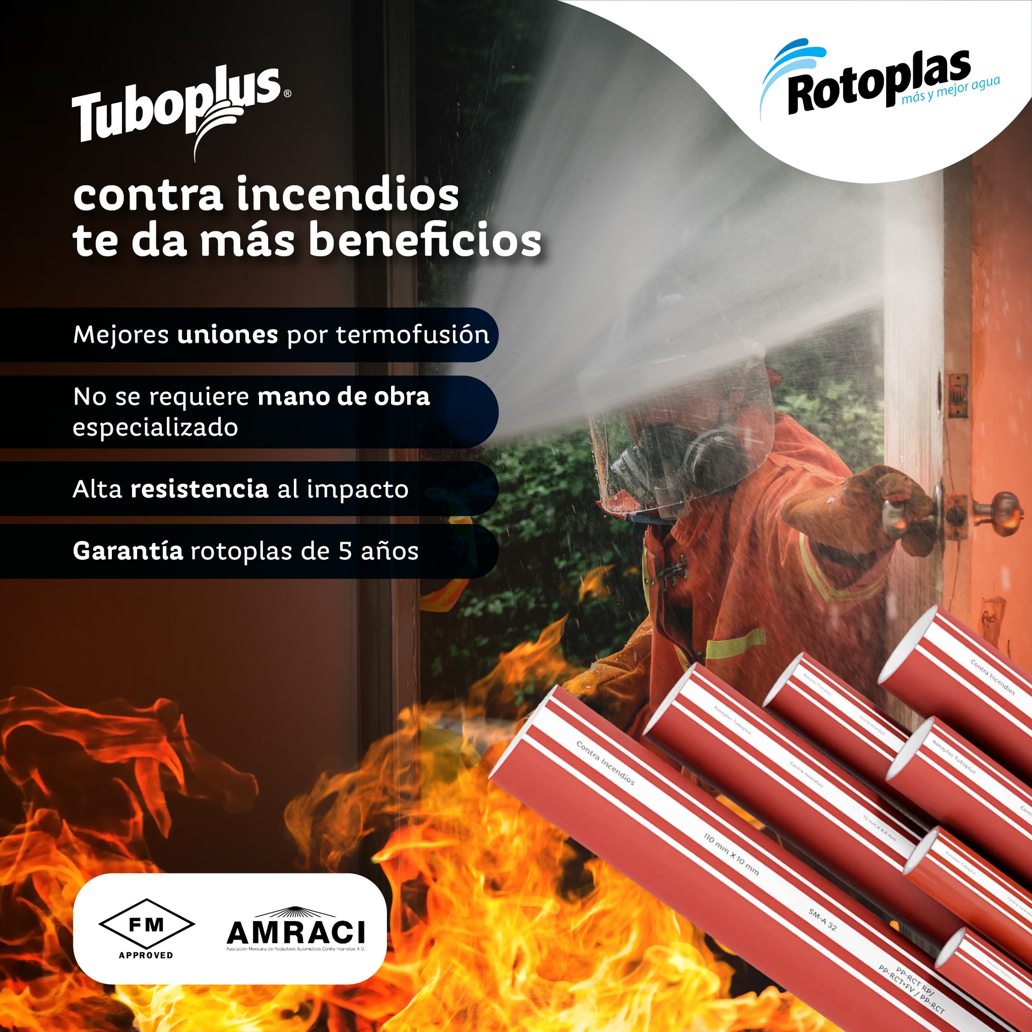 Si buscas una solución eficiente, segura y duradera para la protección contra incendios, Tuboplus Contraincendios (PPR-CT RP+FV) es la mejor opción.